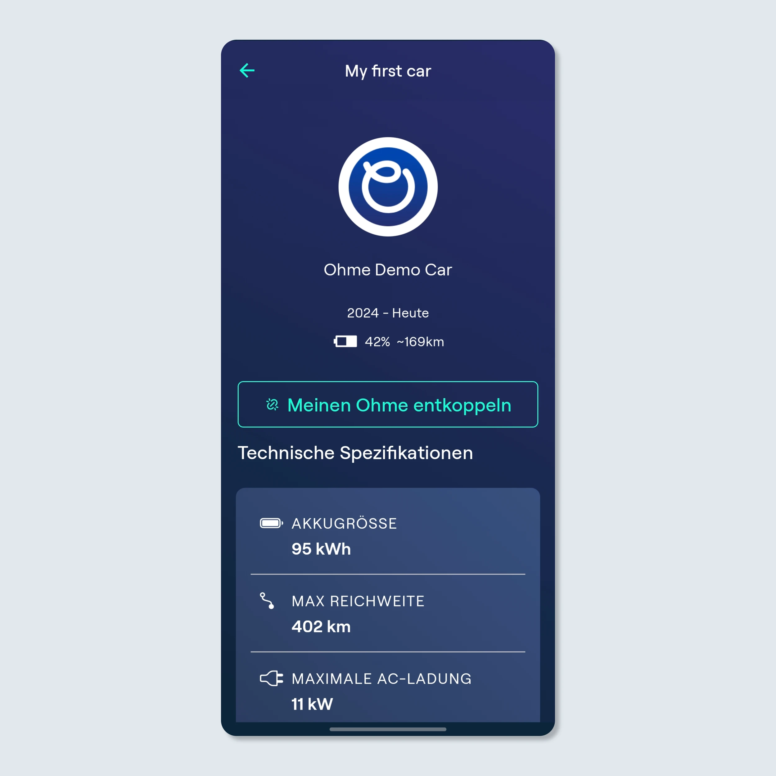 Der Akkustand deines Autos wird in der Ohme App nicht angezeigt