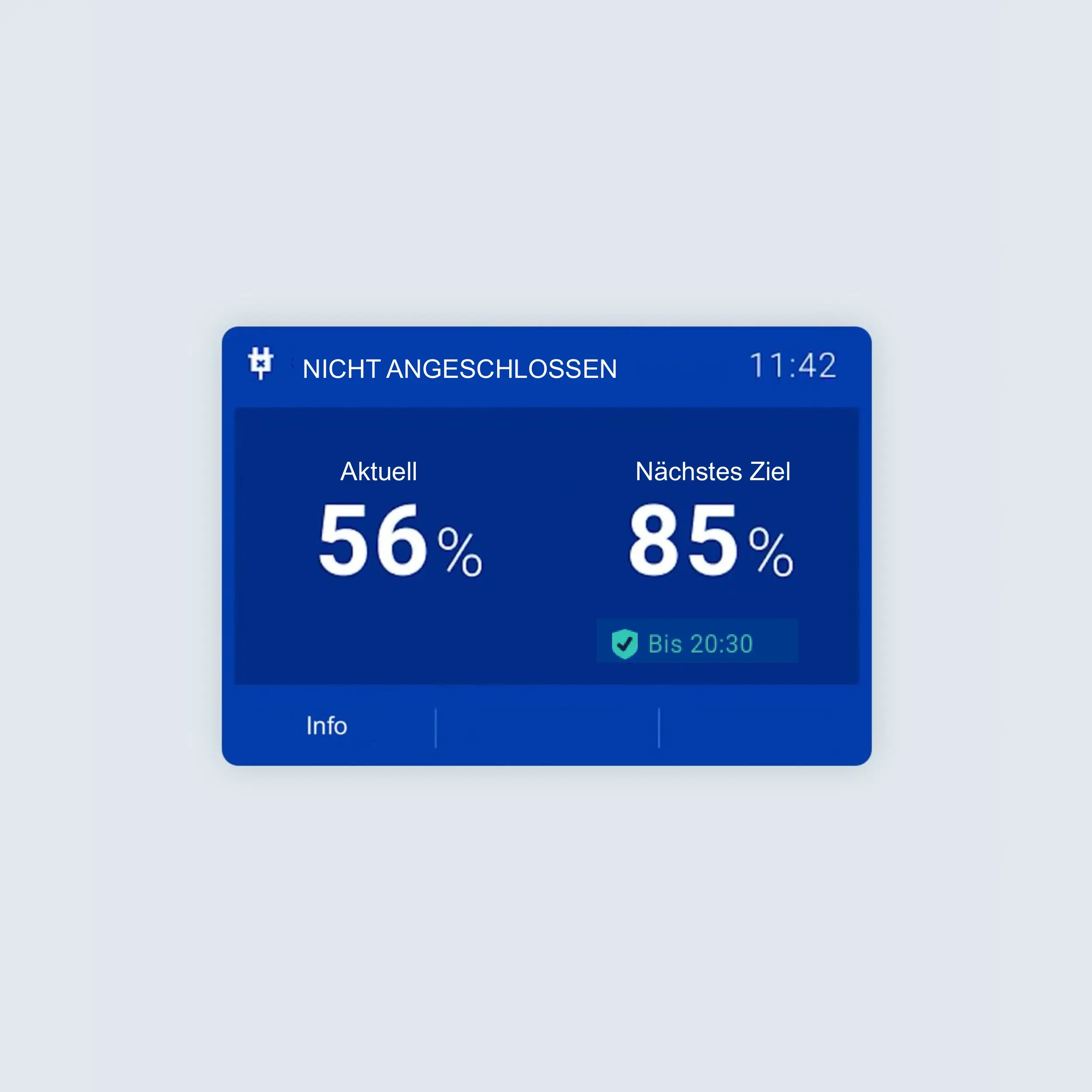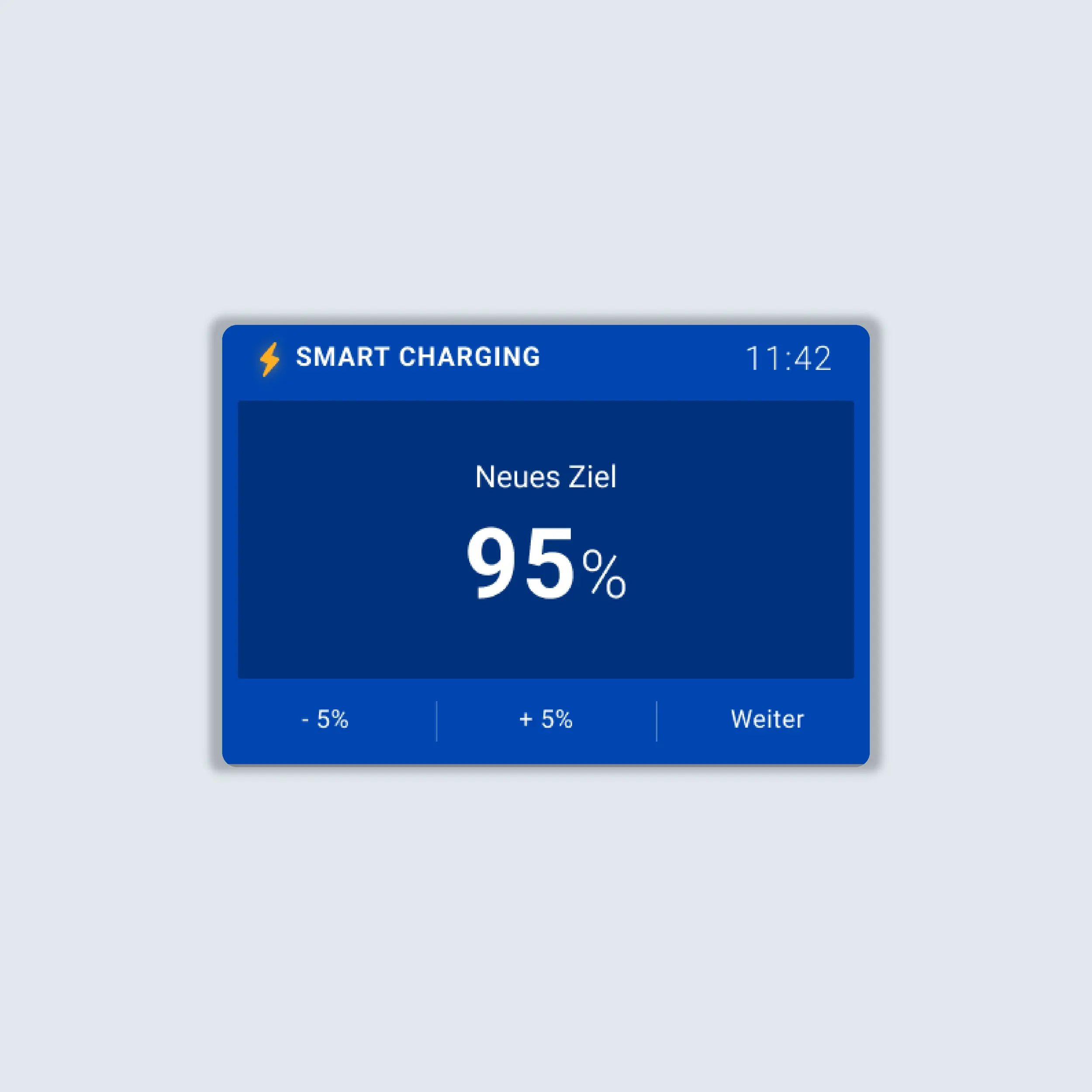 Mit den blauen Tasten erhöhst oder verringerst du dein Ladeziel in 5 %-Schritten.
