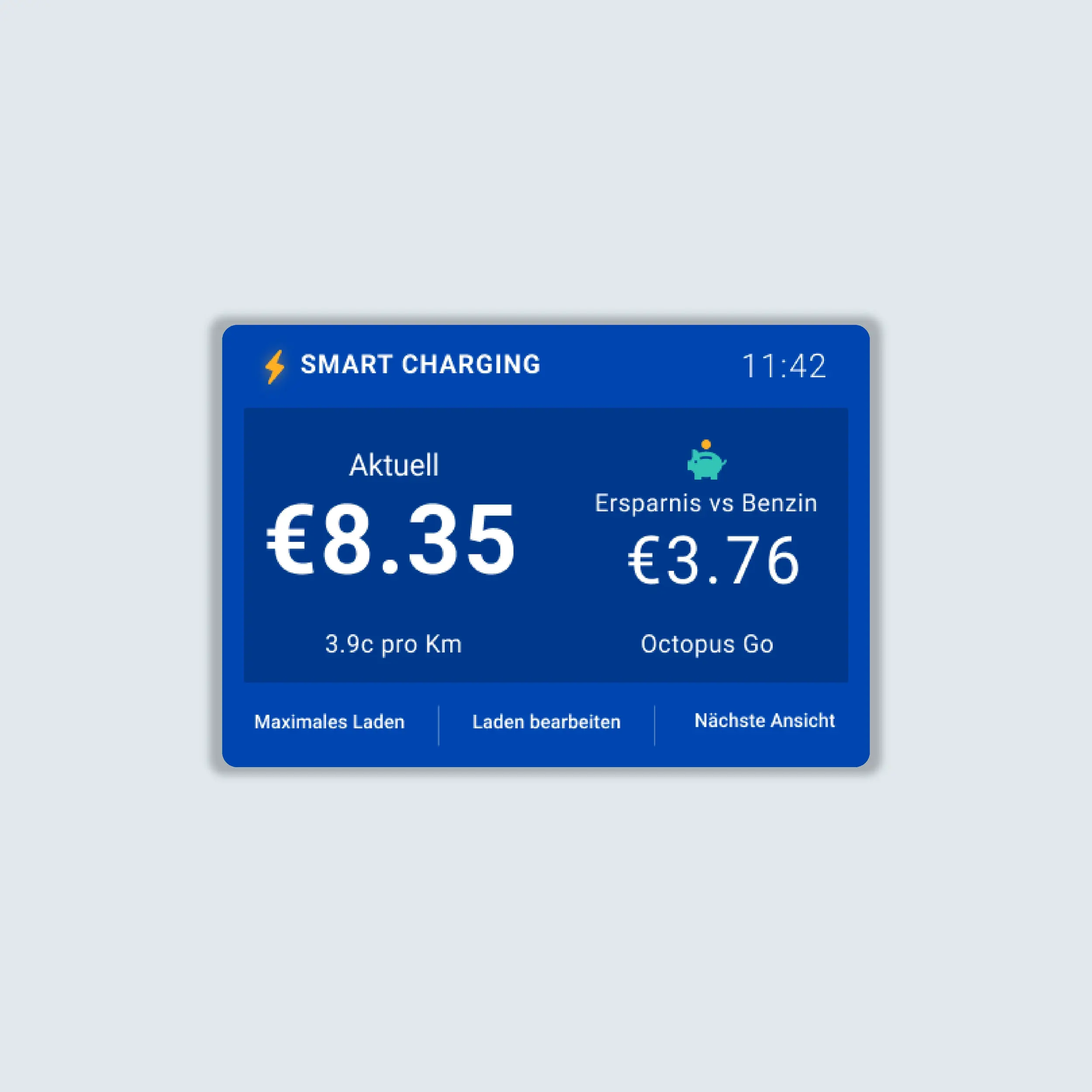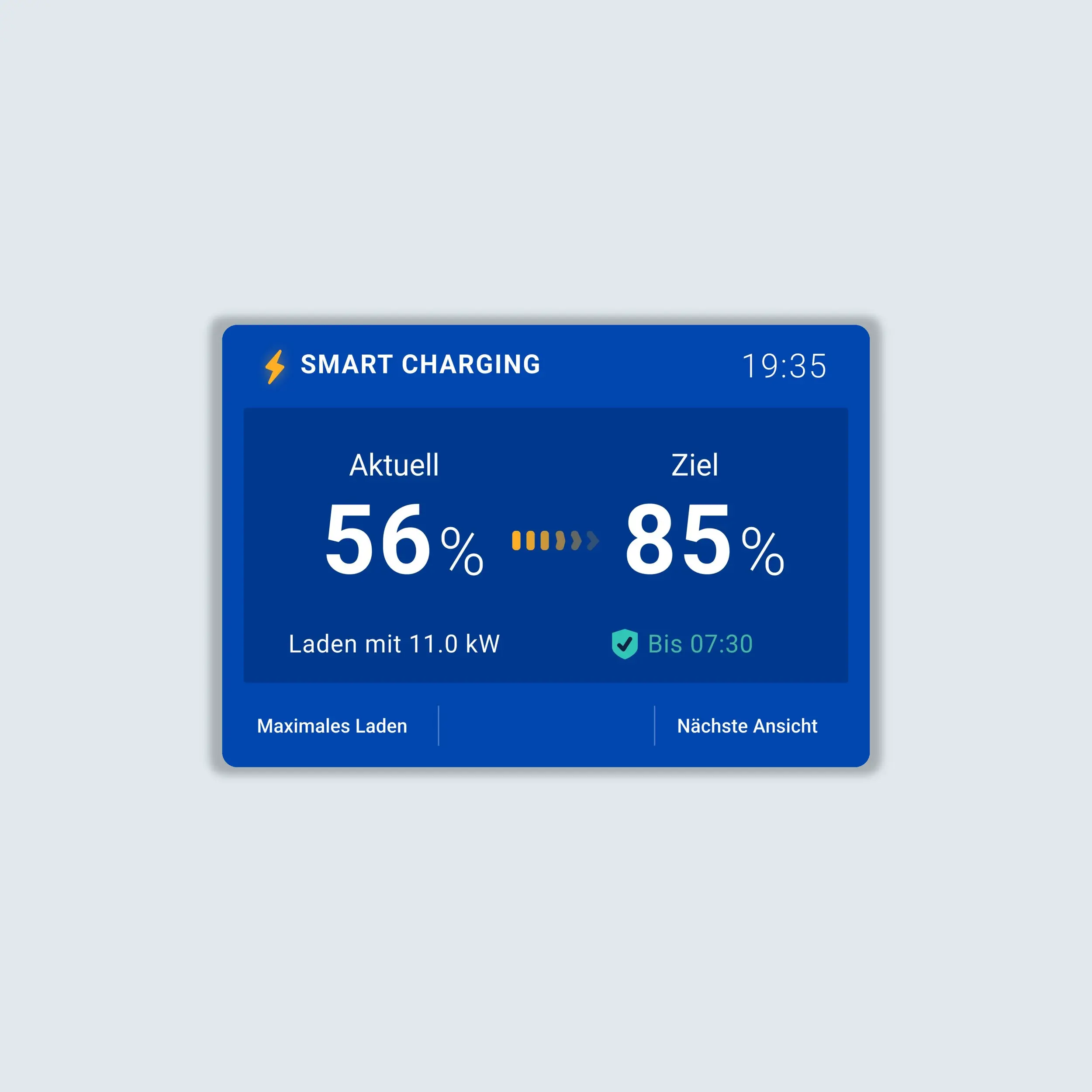 Sobald das Ladegerät mit dem Fahrzeug verbunden ist, erscheint oben links „Smart Charging“ (Intelligentes Laden).