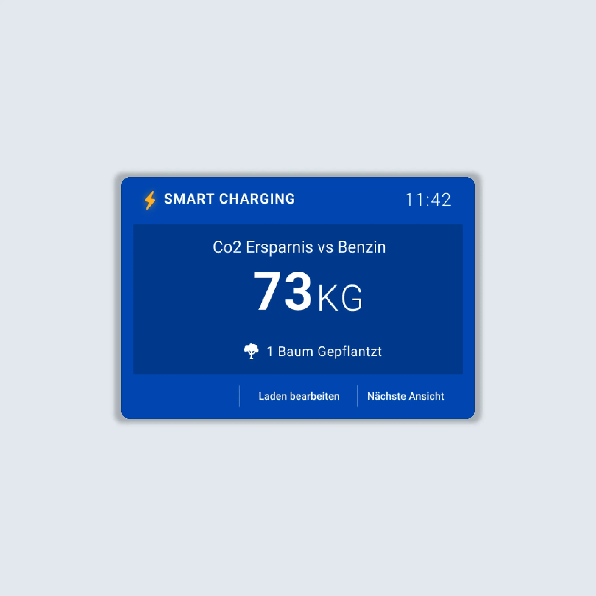 Tippe auf „Nächste Ansicht“, um zu sehen, wie viel CO₂ im Vergleich zu einem Benzinfahrzeug eingespart wurde.