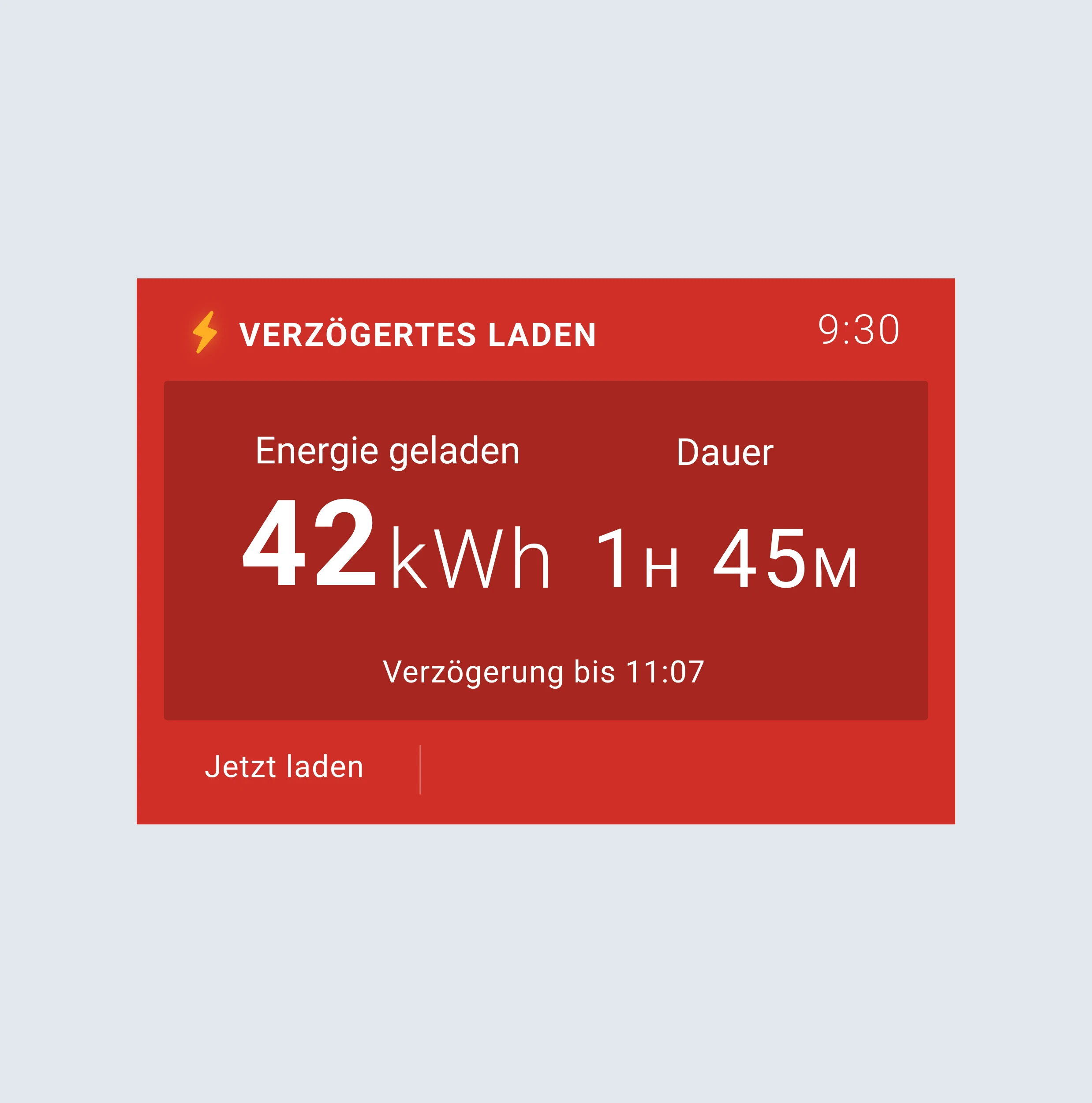 Sobald der Ladevorgang verzögert wurde, siehst du oben links „Verzögertes Laden” sowie „Verzögert bis” mit der Uhrzeit, zu der Ohme mit dem Laden beginnen soll.