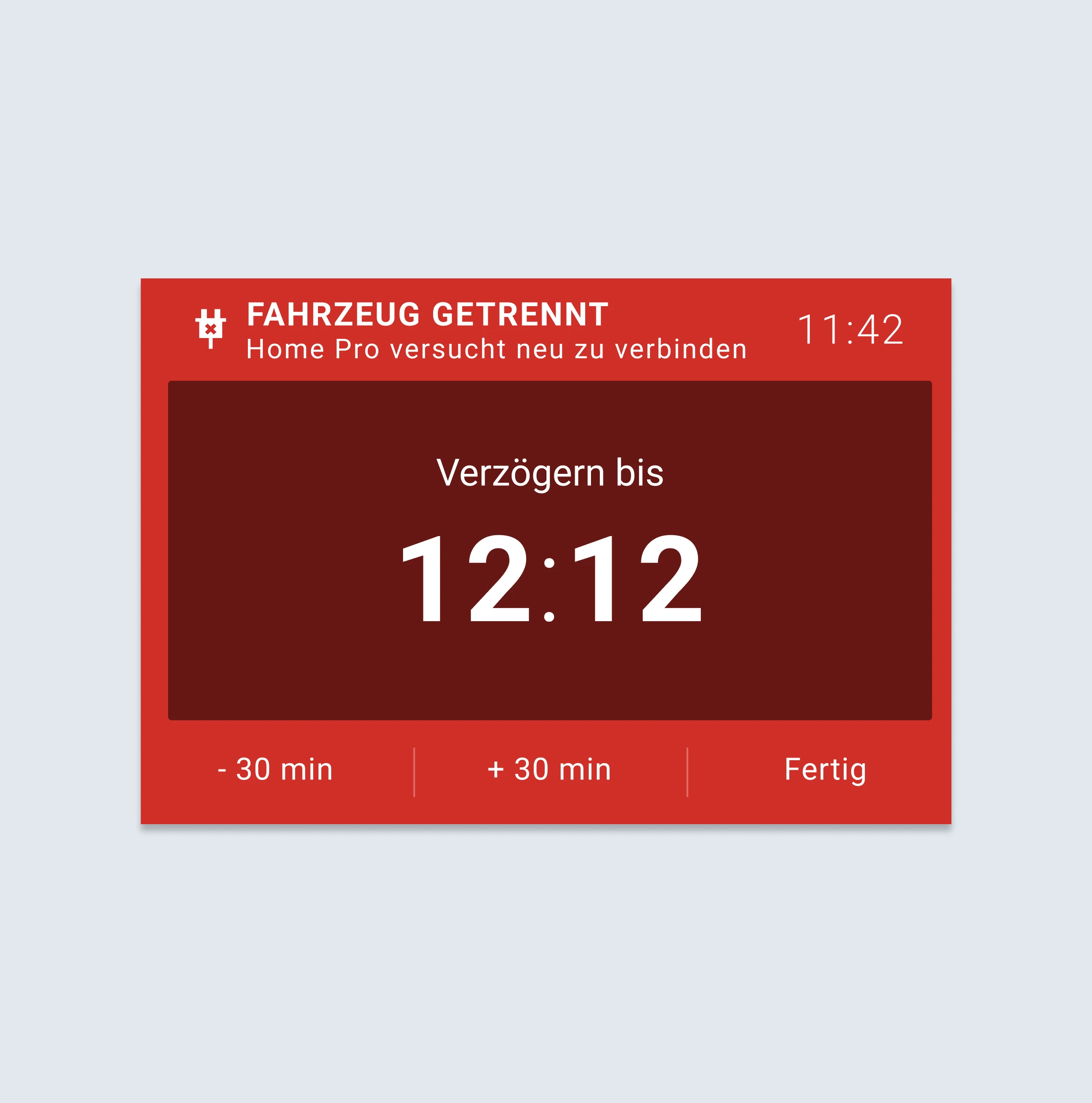 Wenn dein Ladegerät offline geht, startet Ohme sofort einen Maximallade-Vorgang, sobald du es anschließt. Tippe auf „Stopp”, um den Ladevorgang zu unterbrechen, oder auf „Laden verzögern”, um festzulegen, wie lange Ohme warten soll, bevor der Ladevorgang beginnt.