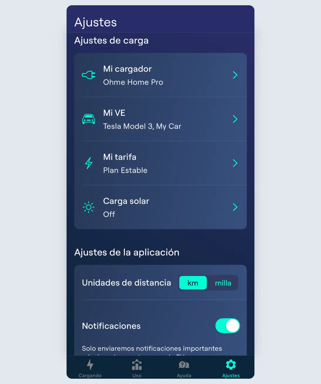 Para empezar, ve a la página de Ajustes y pulsa “Mi cargador”.
