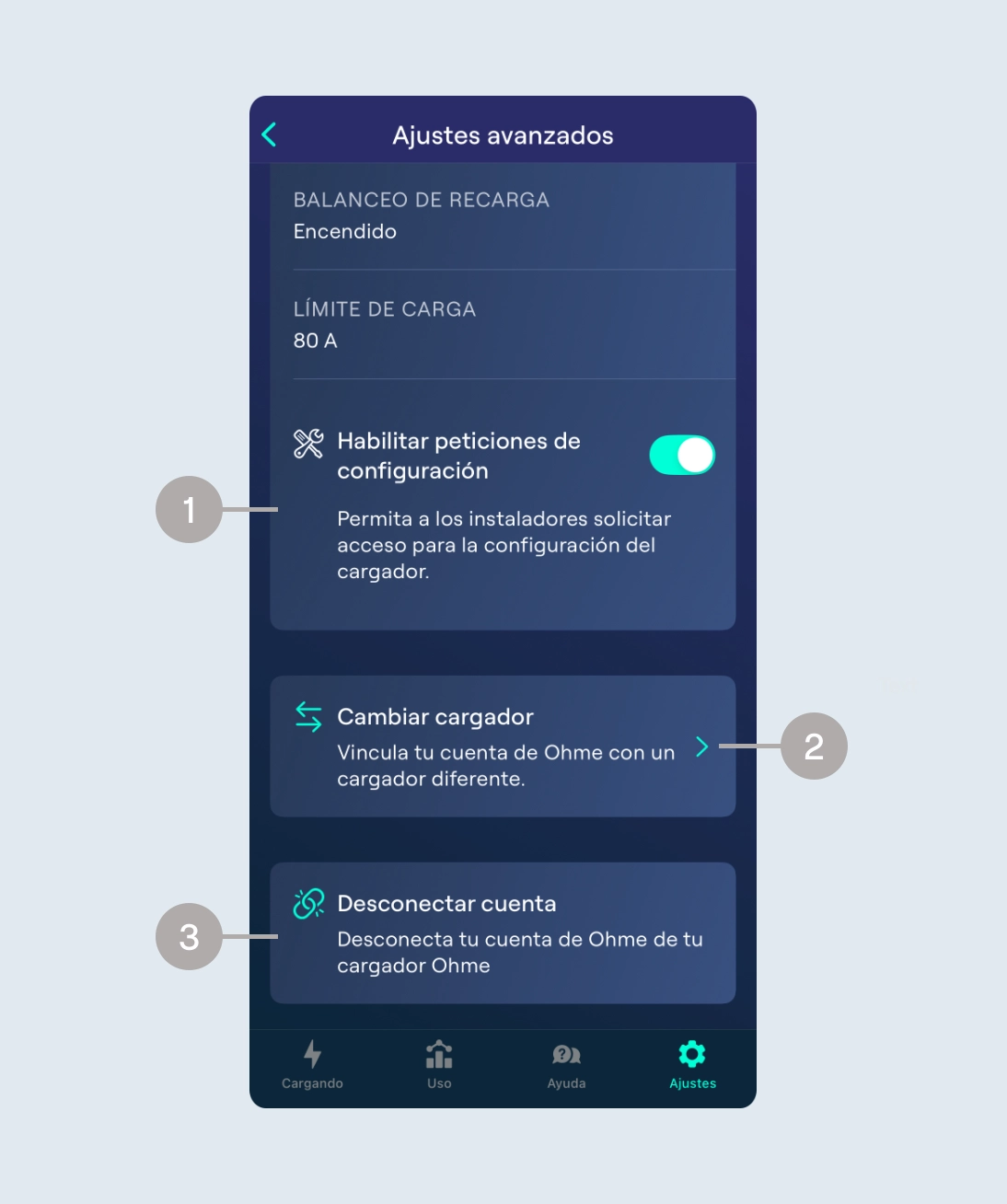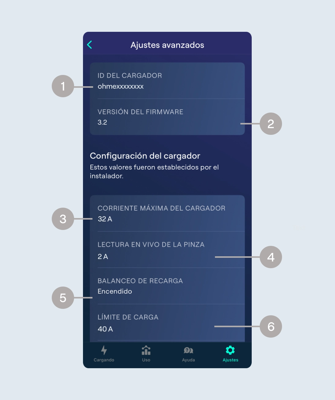 - Límite de carga: establecido por tu instalador, normalmente ajustado al tamaño del fusible de tu propiedad