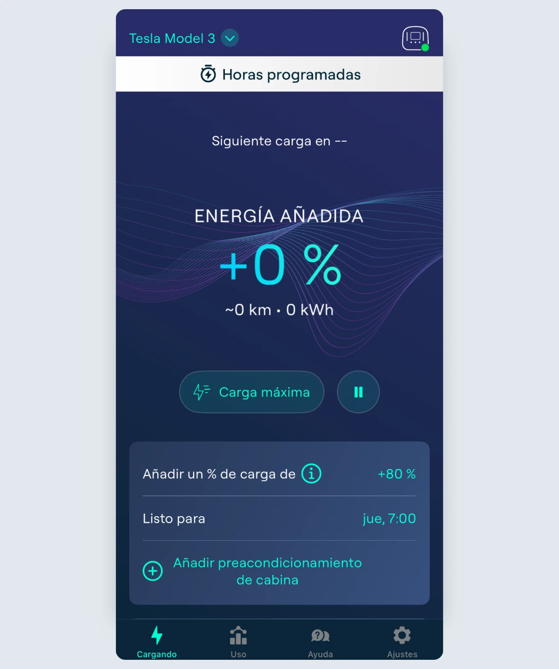 Puedes mantener estos ajustes iguales cada vez que conectes el coche, o ajustarlos en cada sesión según cuánta carga necesites y a qué hora quieras que el coche esté listo.