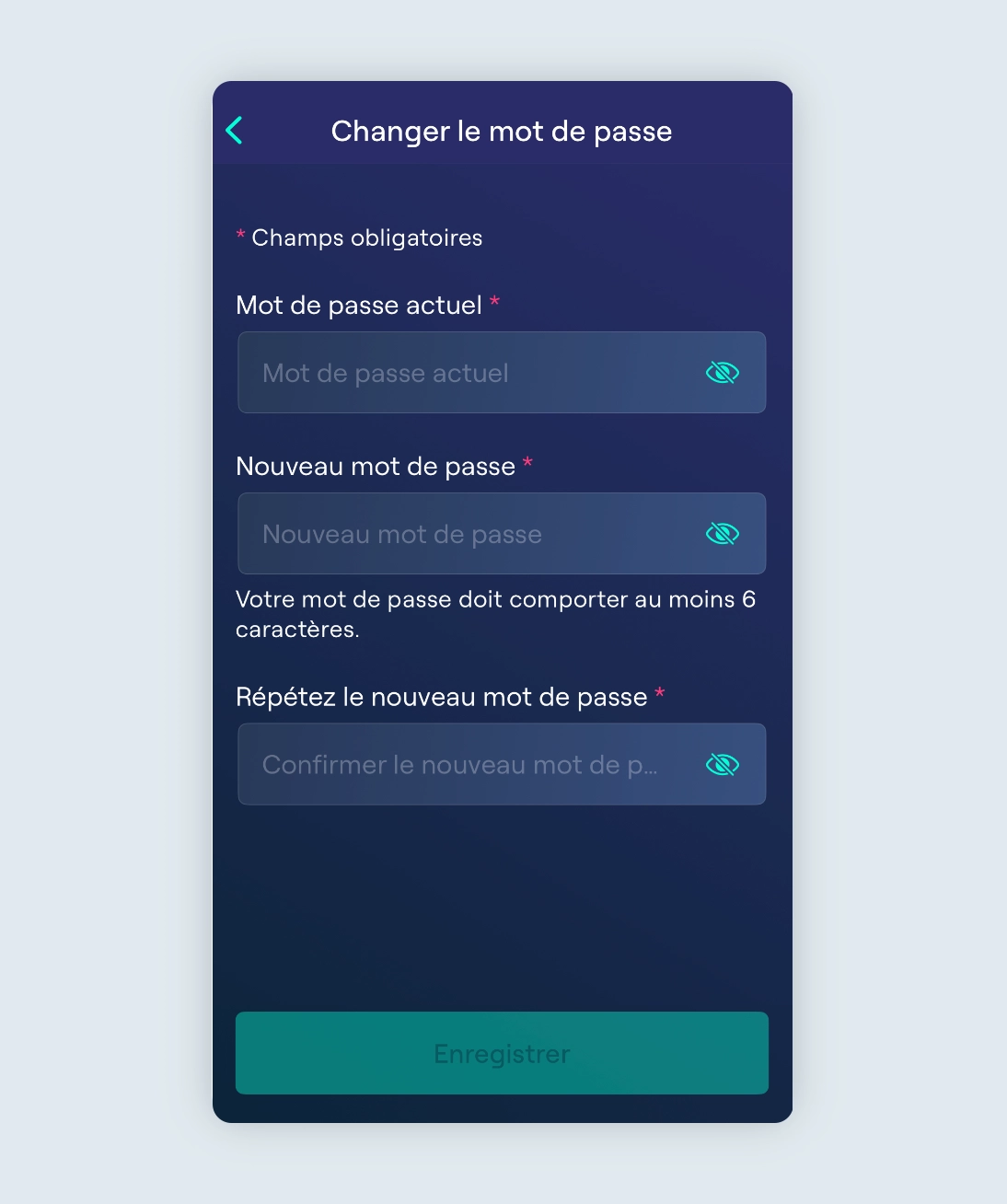 Si vous souhaitez modifier ou mettre à jour votre mot de passe, rendez-vous sur la page Paramètres et appuyez sur le bouton « Modifier le mot de passe ».