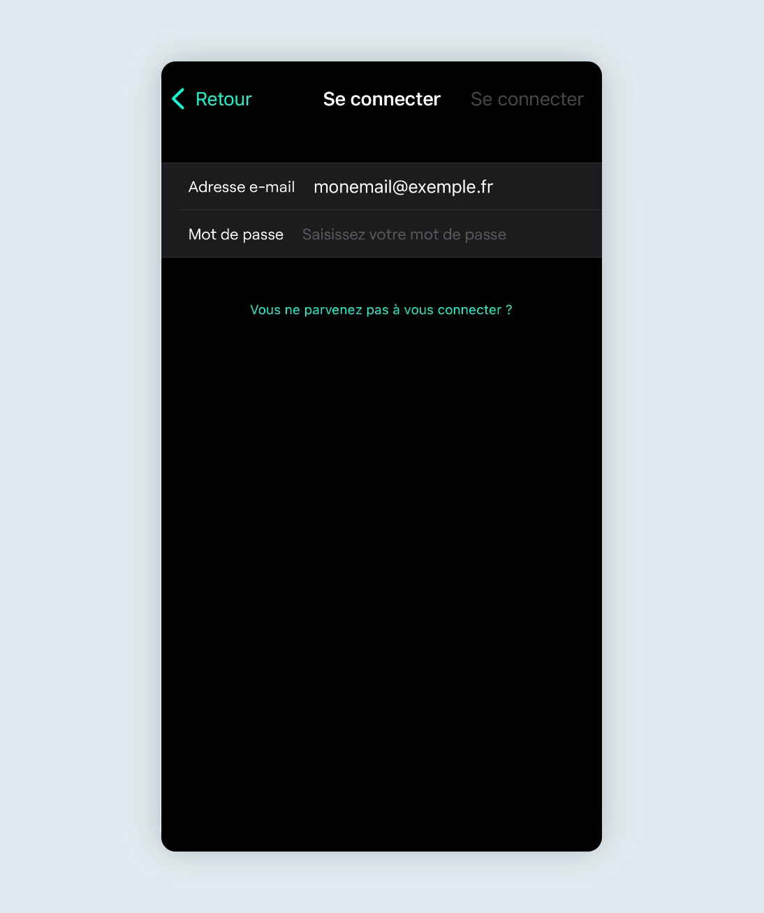 Si vous avez oublié votre mot de passe, vous pouvez demander un e-mail de réinitialisation. Cette option est disponible uniquement pour les comptes créés avec une adresse e-mail.