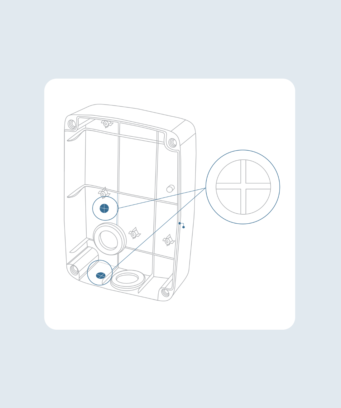 Vous pouvez utiliser une deuxième entrée de câble pour le câble de données. Deux points de perçage sont marqués d’une croix sur le boîtier arrière. Utilisez le presse-étoupe M16 fourni pour acheminer le câble.
