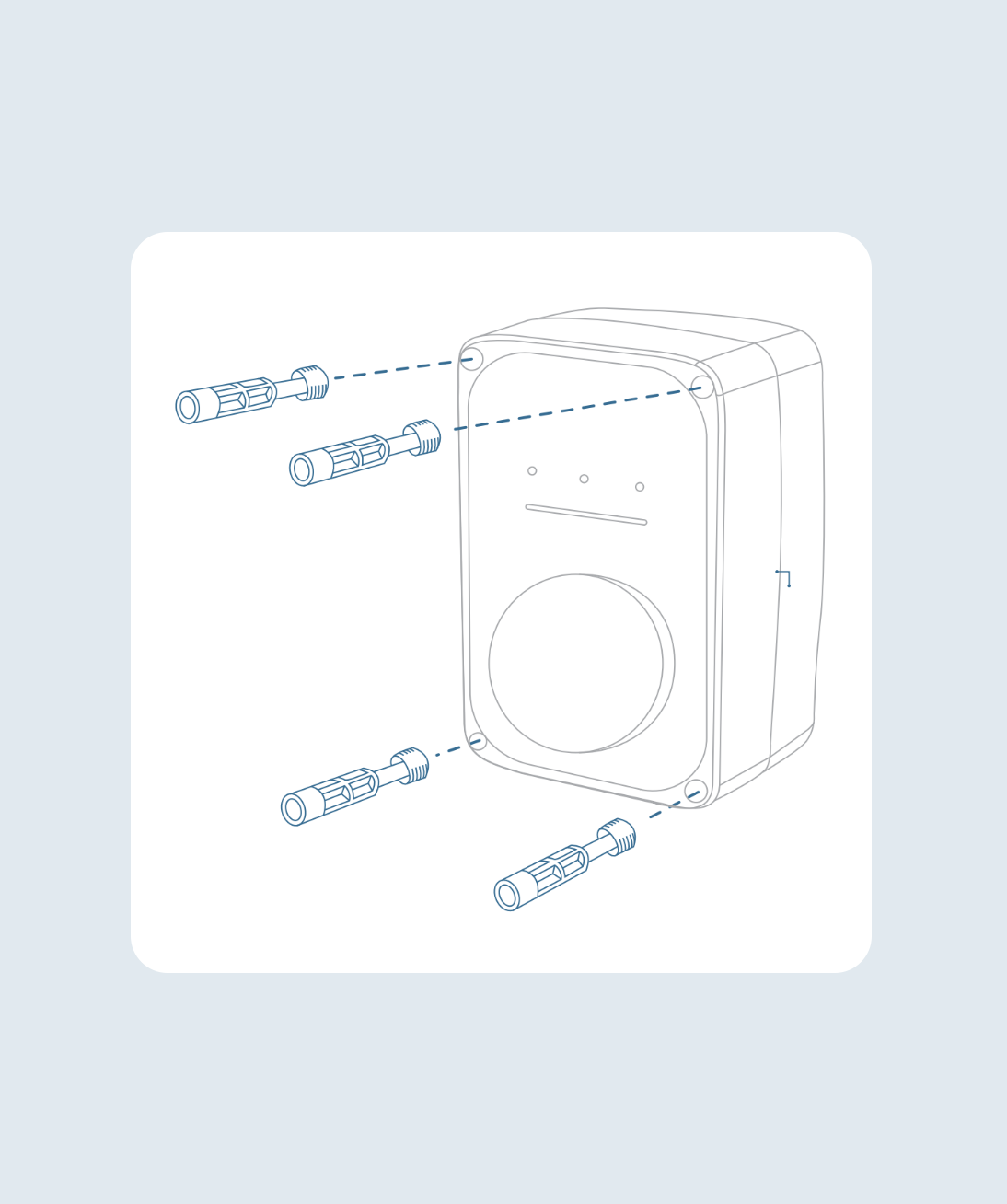 Fixez le boîtier avant de l’ePod S au boîtier arrière fixé au mur à l’aide des vis en plastique fournies. Utilisez un couple de serrage jusqu’à 1,2 Nm pour éviter de casser les vis en plastique. Refixez les bouchons à vis fournis.