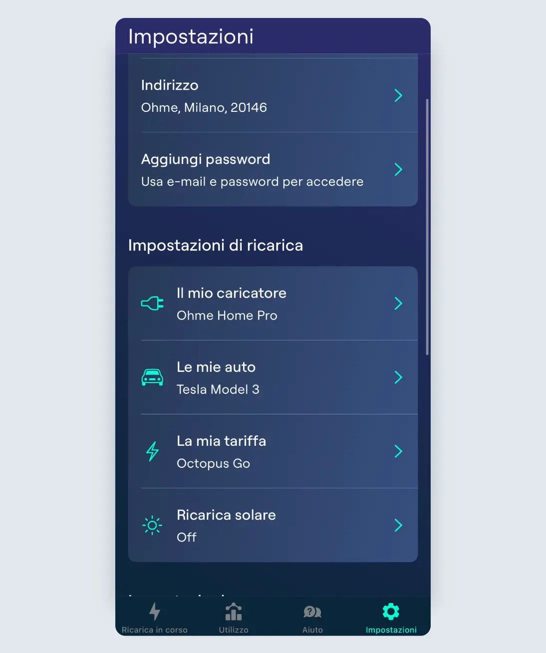 Per iniziare, vai alla pagina Impostazioni e tocca “Il mio caricatore”.