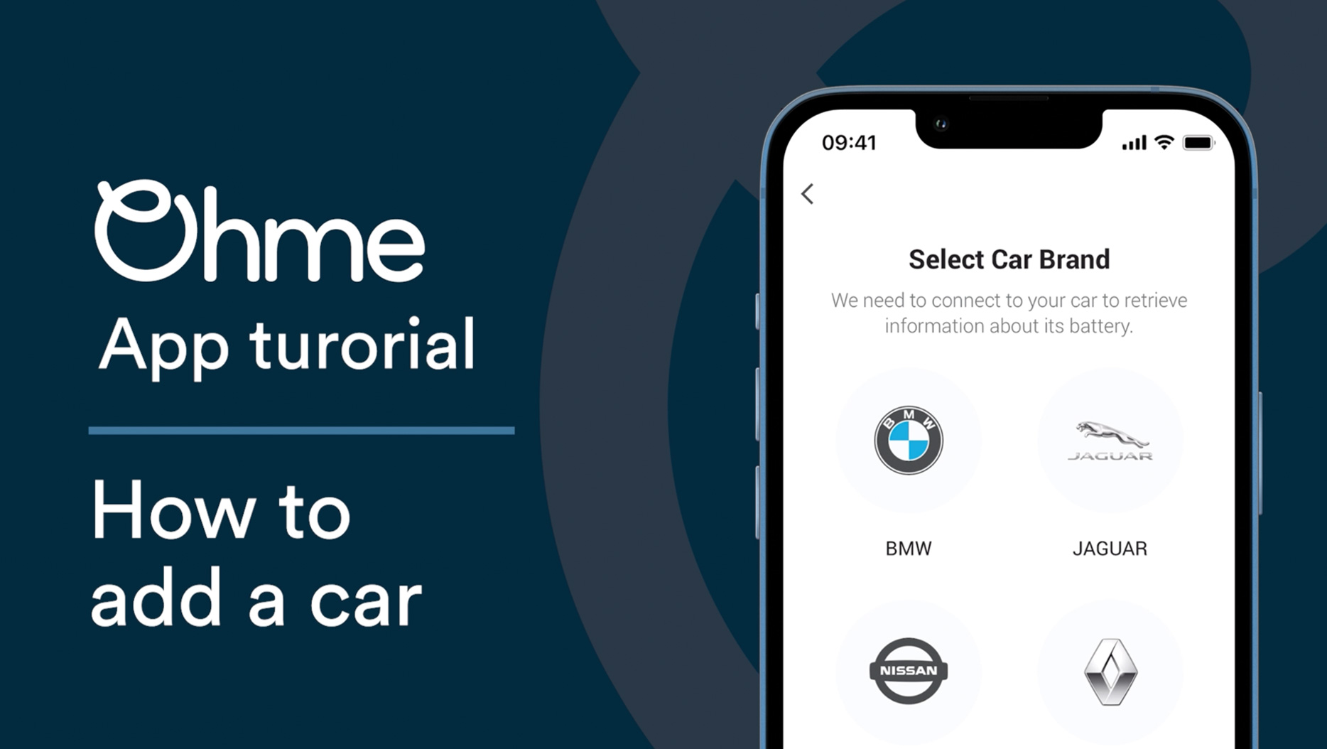 De laatste stap is het instellen van je voertuig. Dit laat ons weten welk elektrisch voertuig (EV) aan het opladen is, evenals de grootte van de batterij, het bereik en de maximale snelheid waarmee je EV kan opladen. Al deze informatie is belangrijk om ervoor te zorgen dat Ohme je EV correct oplaadt.